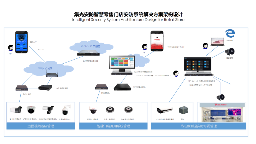 mile米乐集团安防双光智能警戒系统 支持门店部署,摄像机部署于门店出入口, 除可满足门店视频监控功能外,当顾客进店时,该系统可第一时间通过前沿人形检测视频分析技术识别顾客进店状态,按后台预设欢迎语播报欢迎语音进行提醒,便于店员及时提供接待服务,提升门店新老顾客进店的体验及满意度,系统支持mile米乐集团安防G-Cloud集云移动客户端远程视频管理、报警邮件推送。